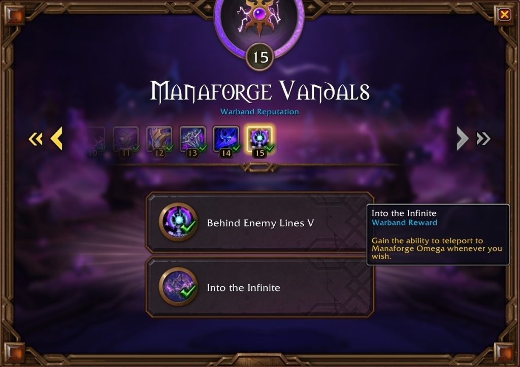 Фінальний рівень прогресу репутації рейду Manaforge Vandals став доступний цього тижня — він піднімає рейдовий бонус до +15% шкоди/зцілення та відкриває персональний телепорт у Manaforge Omega!