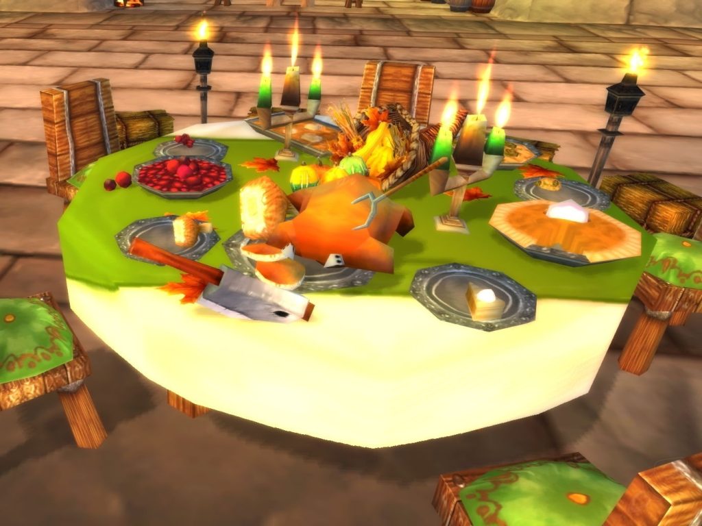 Основні активності Pilgrim’s Bounty проходять за щедрими столами, розташованими в багатьох зонах Kalimdor і Eastern Kingdoms. Поряд зі столами у великих містах ви знайдете сезонних продавців та NPC, що пропонують щоденні квести, за які можна отримати спеціальні кулінарні інгредієнти.