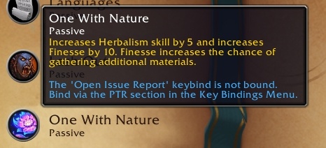 - One With Nature — підвищує навичку Herbalism на 5 і збільшує Finesse на 10. Finesse підвищує шанс отримати додаткові матеріали під час збирання.