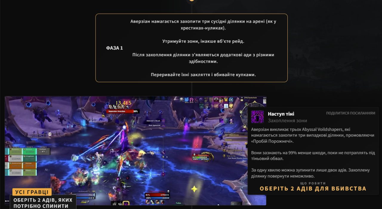 На сайті Mythic Trap вийшли посібники для рейдів Midnight з тактиками й відеовставками для всіх рівнів складності. Наразі автори завантажили гайди для 6 босів, українською доступно 5,5 (решта перекладу для Химерія вийде згодом).