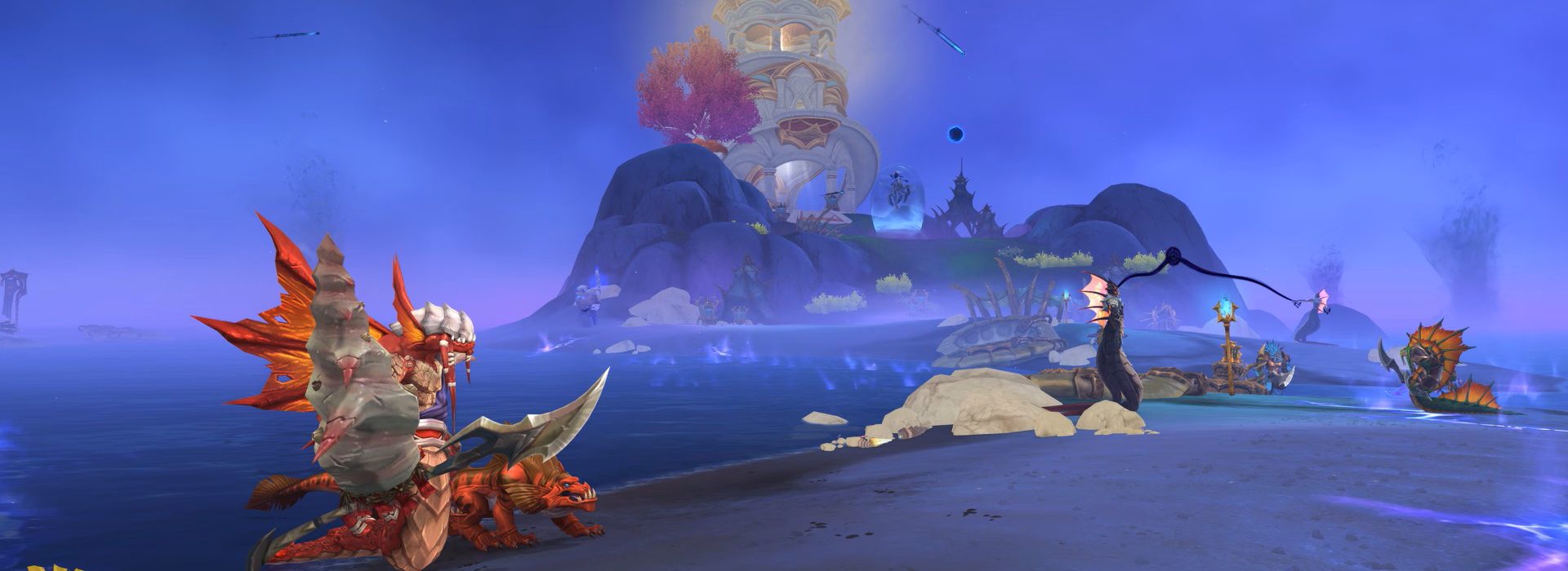 Одним із таких рідкісних ворогів у Daggerspine Point є Mana-Gorged Greatwyrm — фіолетовий мана-дракон, просякнутий силою Порожнечі, який патрулює Ritual Site.