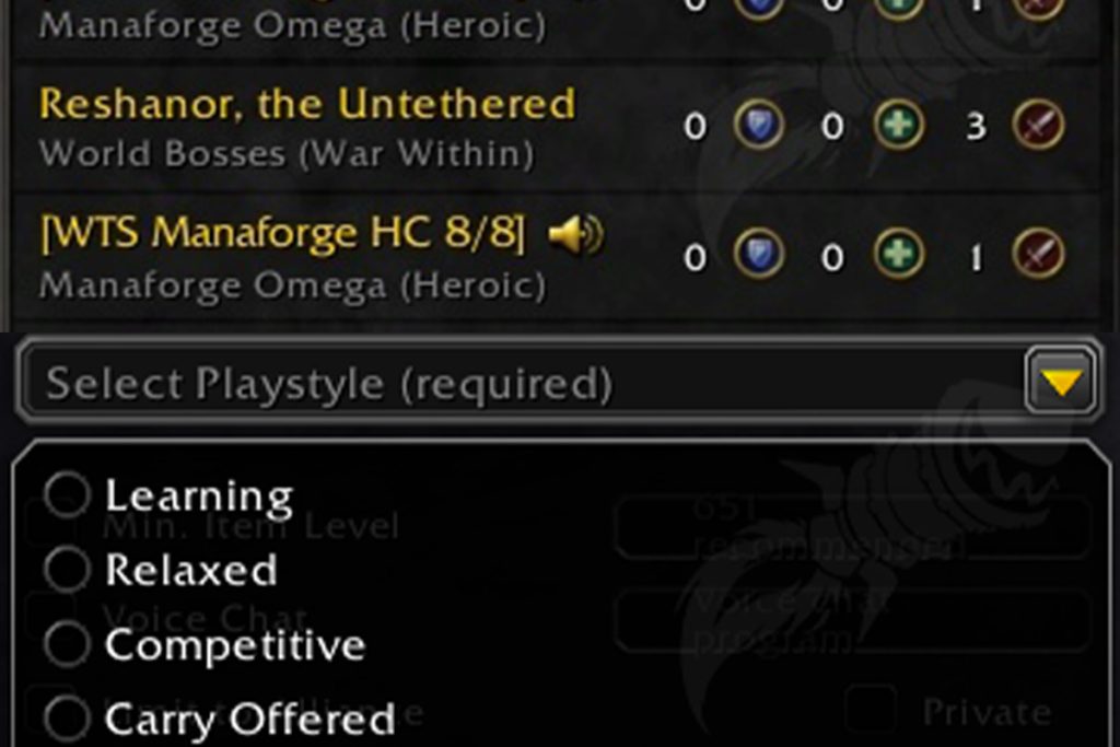 17 Листопада 2025Автор flexykitty 17 Листопада 2025Обов’язкова функція Playstyle Options у пошуку групУ Group Finder з’явиться обов’язкова функція, де гравці повинні вибрати Playstyle для контенту, в якому вони планують брати участь у Midnight