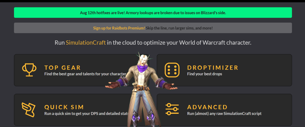 Тепер ми чекаємо поки до нас дійде черга. Raidbots можна використовувати безкоштовно і очікування в черзі в цілому - основне обмеження. Інше обмеження - кількість "варіантів" симуляції. Обидві ці штуки вирішуються платною підпискою на raidbots, якщо вам це необхідно. Але безкоштовної повинно вистачити з головою. Черги зазвичай не дуже великі навіть в день ресета (хвилин 10 максимум), а великі вибірки речей можна поділити на менші.