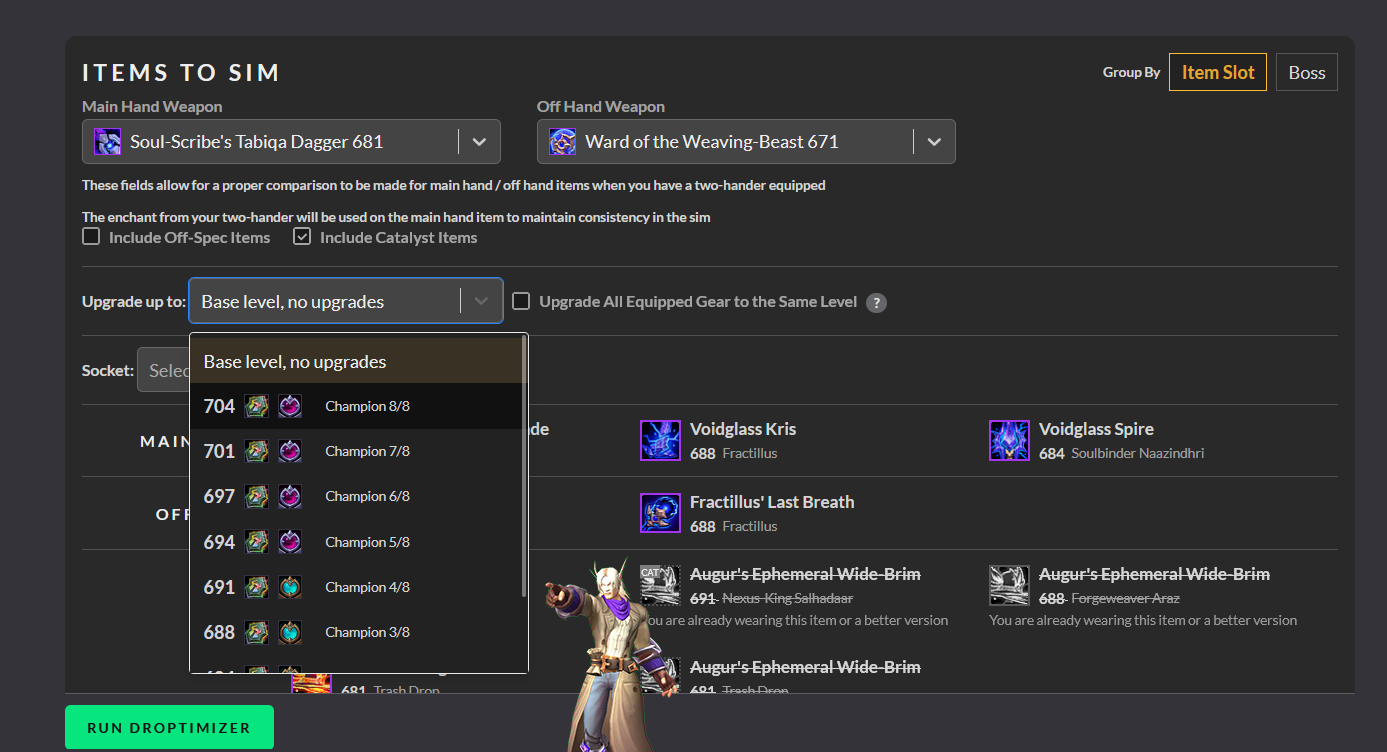 На початку кожного РТ заходите в DROPTIMIZER, так само як і для Top Gear вводите текст з /simc.